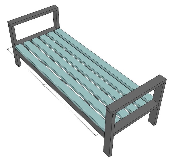 Ở bước này bạn có thể sử dụng khoảng 5 6 thanh gỗ dài bằng cái ghế, theo kích thước ở trên là khoảng 142cm, và dùng khoan bắn vít hoặc dùng búa đóng đinh cố định chúng vào phần khung ghế ngồi cho chắc chắn như hình dưới đây.