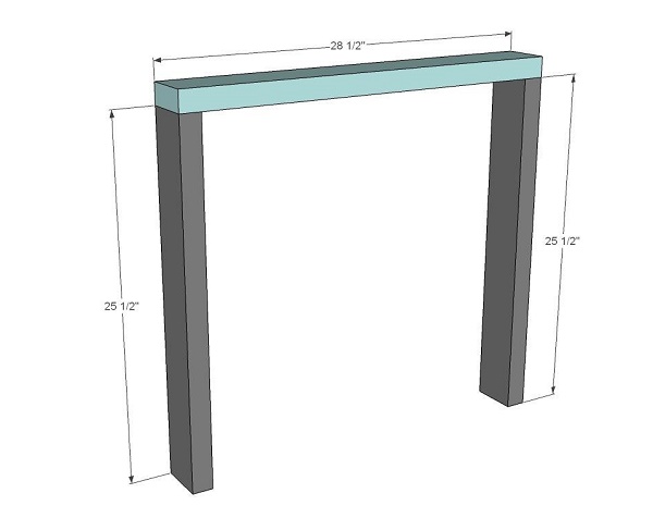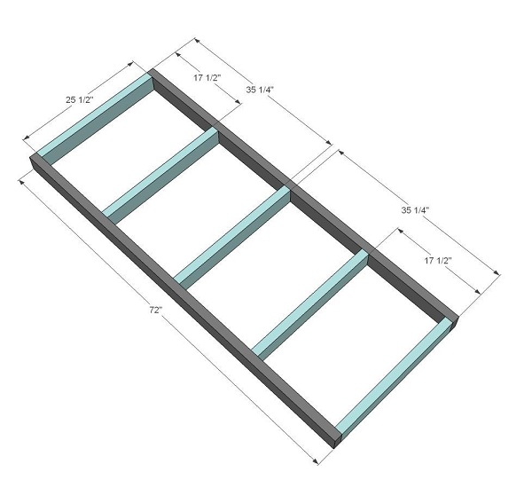 Bước tiếp theo để làm ghế sofa chính là tạo 2 chiếc khung để tay, bước này thì khá đơn giản bạn có thể sử dụng khoảng 3 thanh gỗ, 2 thanh bằng nhau có kích thước khoảng 142cm và 1 thanh ngang dài khoảng 127cm, sau đó dùng vít hoặc đinh để đóng cố định chúng lại như hình dưới để tạo thành khung để tay chắc chắn.