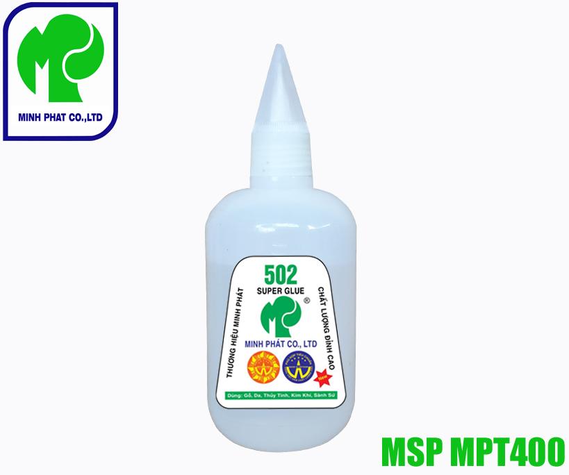 Keo dán sắt Minh Phát: là một hợp chất keo khô nhanh trong vòng 3 giây, gồm 4 thành phần chính là Methylene Chloride, Ethyl Acetate, Toluene, Methyl cyanoacrylate.